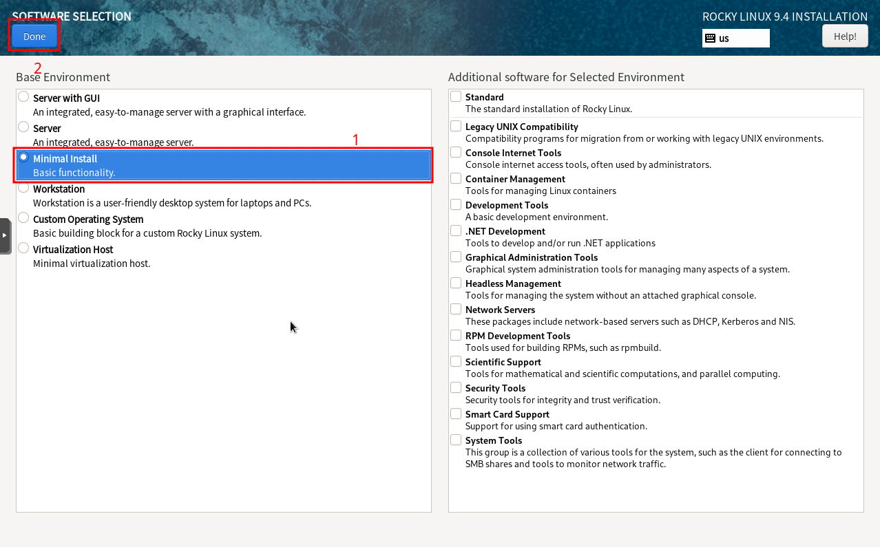 选择最小化安装 (反正都能后装,没必要安装时全装了)